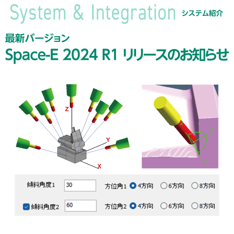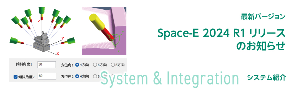 これまでSpace-Eは、加工省力化の技術として注目される5軸加工において、5軸荒取りによる自動割り出し(多軸3+2)機能や5軸中取りテンプレートの追加など、5軸経路の作成作業の簡略化に取り組んできました。今回リリースしたSpace-E 2024 R1(以下、2024 R1)でも、仕上げ工程の5軸経路を作成する作業の簡略化を実現するため、新ロジックによる同時5軸自動仕上げ機能を開発しました。それに加えCAMでも、加工形状、加工範囲、座標系の設定作業の簡略化を行いました。本稿では、2024 R1の機能の詳細についてご紹介します。