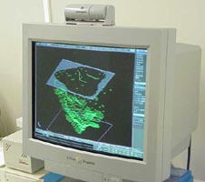 補償フィルターの作成に先立つ治療計画では3mmピッチの点群データが出力されるのみであるので、これを三次元の面データに変換する必要がある。当初はパソコンベースのホームメイドソフトウエアを使用して点群をワイヤーフレームでレンダリングして二次元の加工データをスタックして3次元の加工を行っていたが、カッターパスに自由度がなく極めて長時間の加工時間を要していた。また走査切削しかできないためエンドミルの破損や、エンドミルの逃げによる精度の悪化も問題であった。